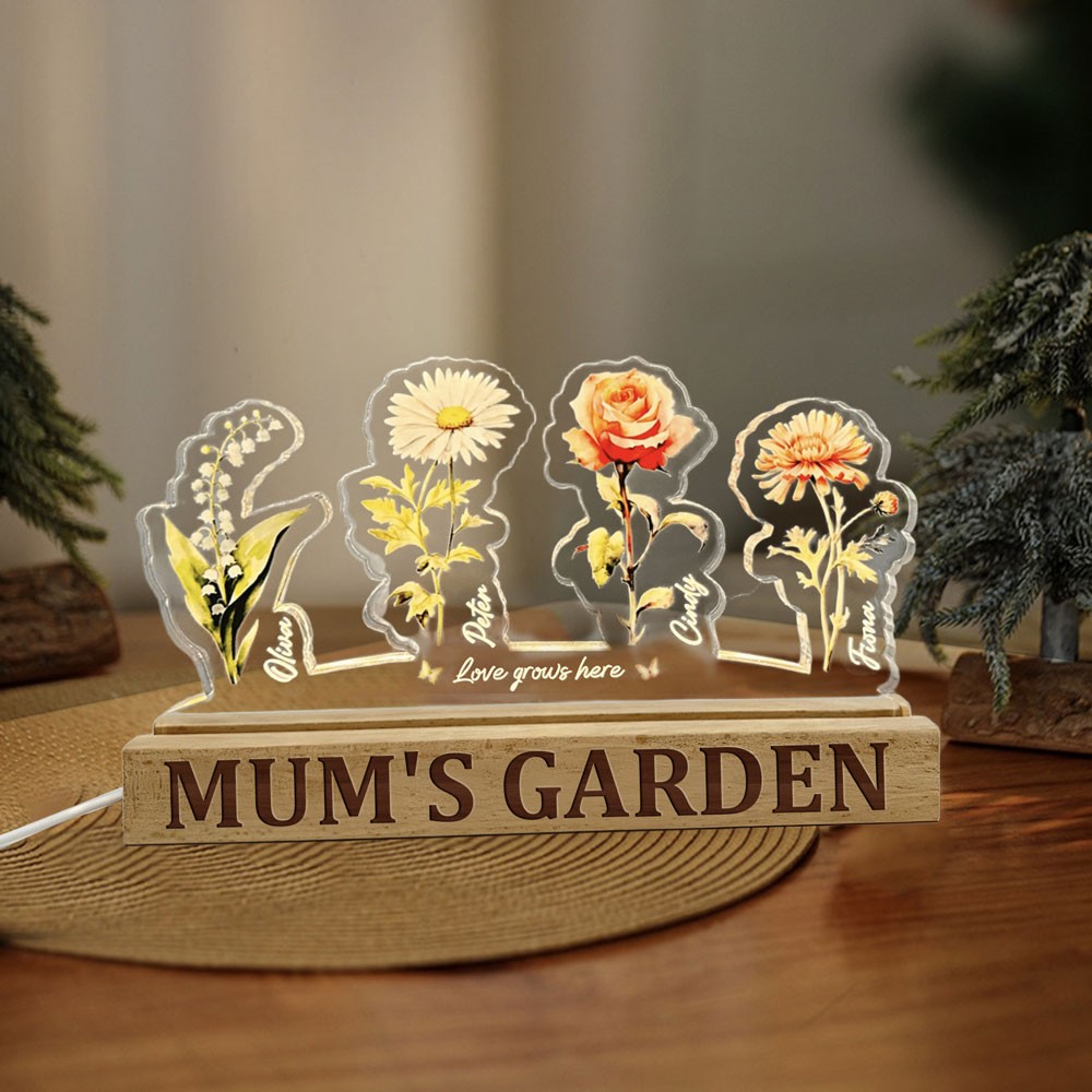 Mum's Garden Custom Birth Month Flower Wood Night Light with Kids Names for Mum Mother's Day Gift Ideas