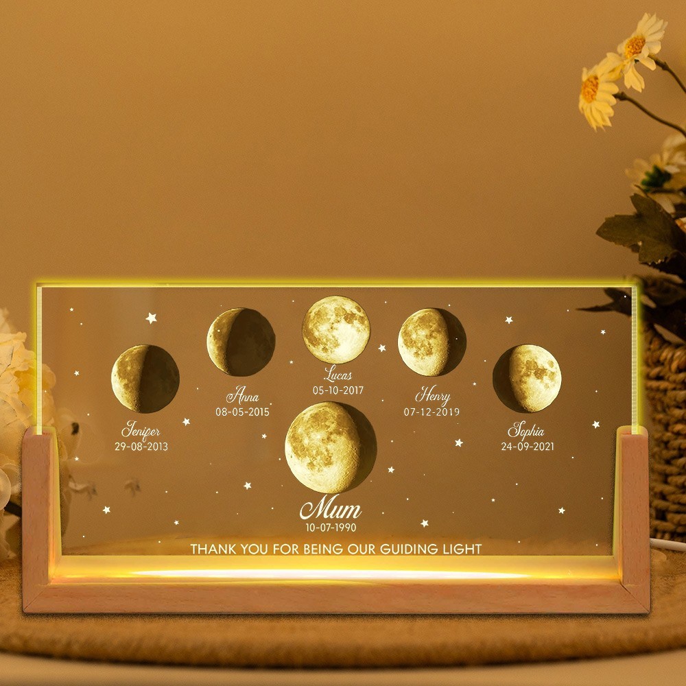 Mum Thank You For Being Our Guiding Light Custom Moon Phase Night Light with Kids Names Gifts for Mum Mother's Day Gift
