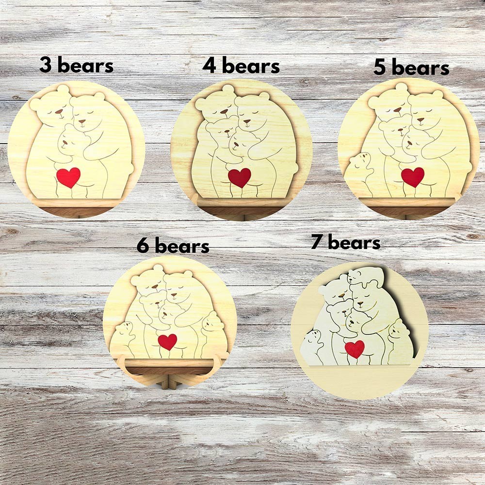 Mum Thanks For Helping Us Grow Personalised Wooden Bear Family Puzzle Sign with Kids Names for Mum Unique Mother's Day Gifts