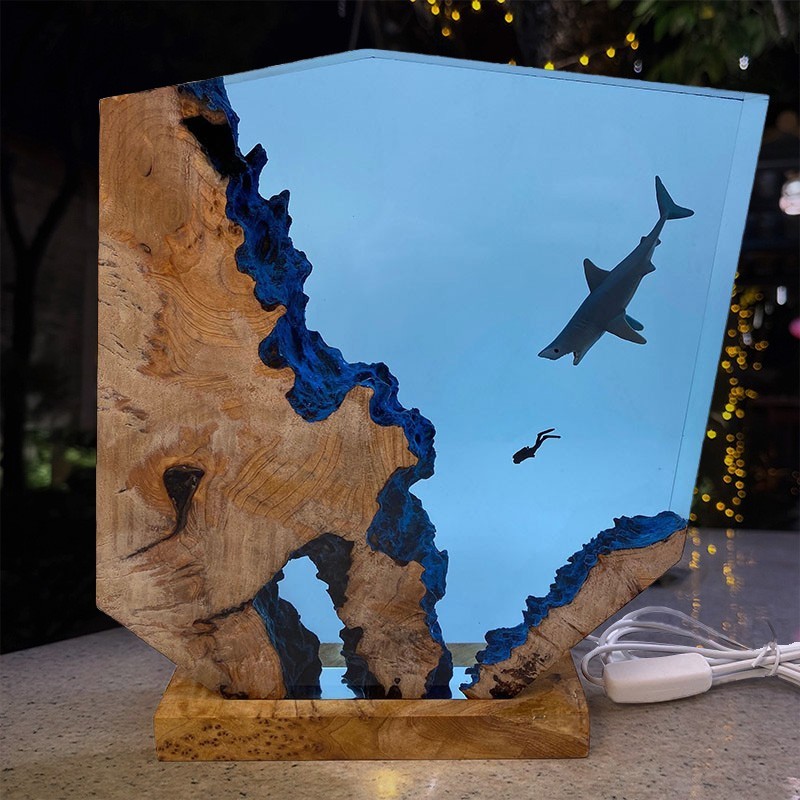 Ocean Shark Resin Wood Lamp Diver Night Light Unique Christmas Gifts Birthday Gift for Her Him