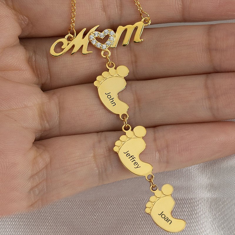 Personalised 1-10 Engraved Name Baby Feet Pendants Mum Necklace Family Gift For Mum Grandma