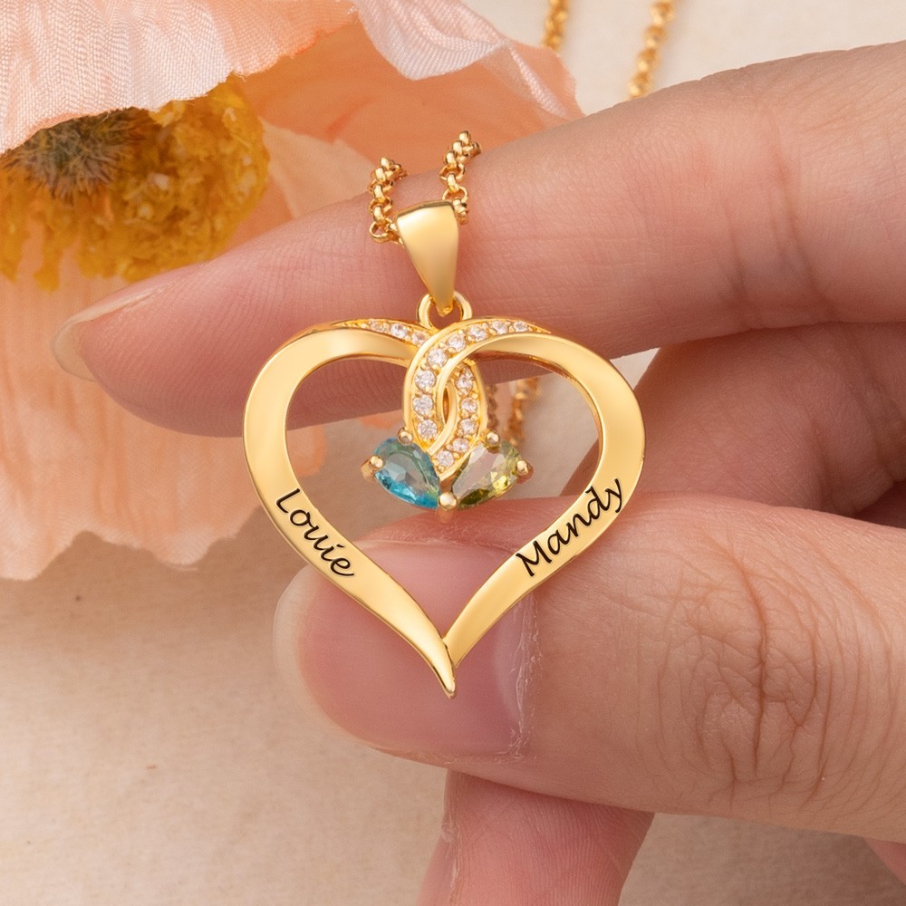 Personalised 2 Names Heart Necklace with Birthstones Designs Gifts for Soulmate Anniversary Gifts For Her