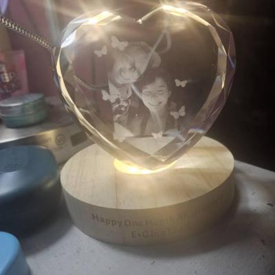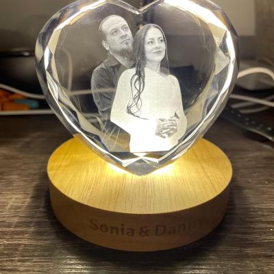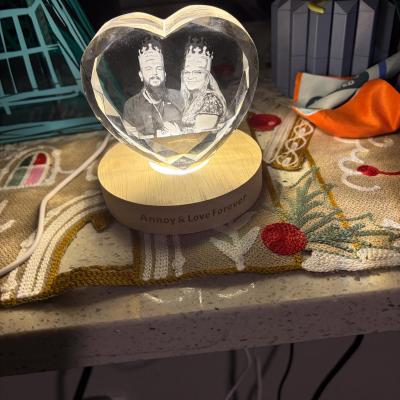 Personalised 3D Crystal Photo Portrait Night Light with Base for Couples Anniversary Gift Christmas Gifts