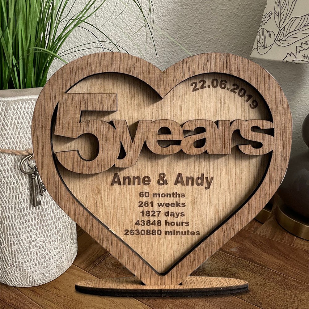 Personalised 5th Anniversary Wood Sign Keepsake Gift for Wife Husband Unique Wedding Gifts