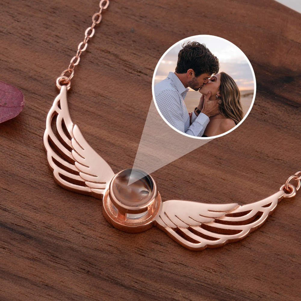 Personalised Angel Wings Projection Necklace With Picture Inside Birthday Gifts For Couple Love Gift For Her