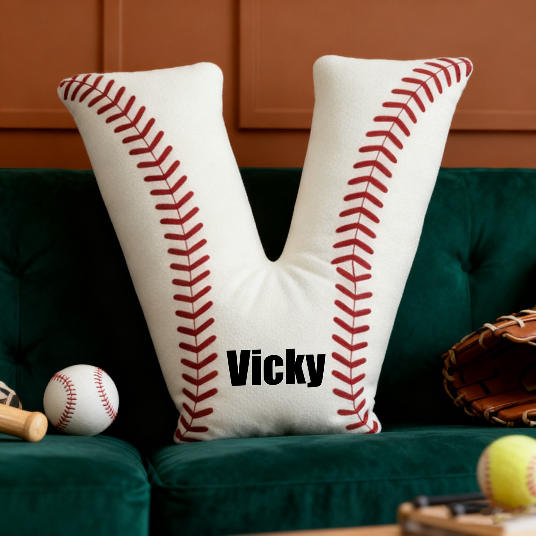 Personalised Baseball Themed Letter Shaped Pillow with Custom Name Baseball Fans Gifts Christmas Gift for Baseball Lover