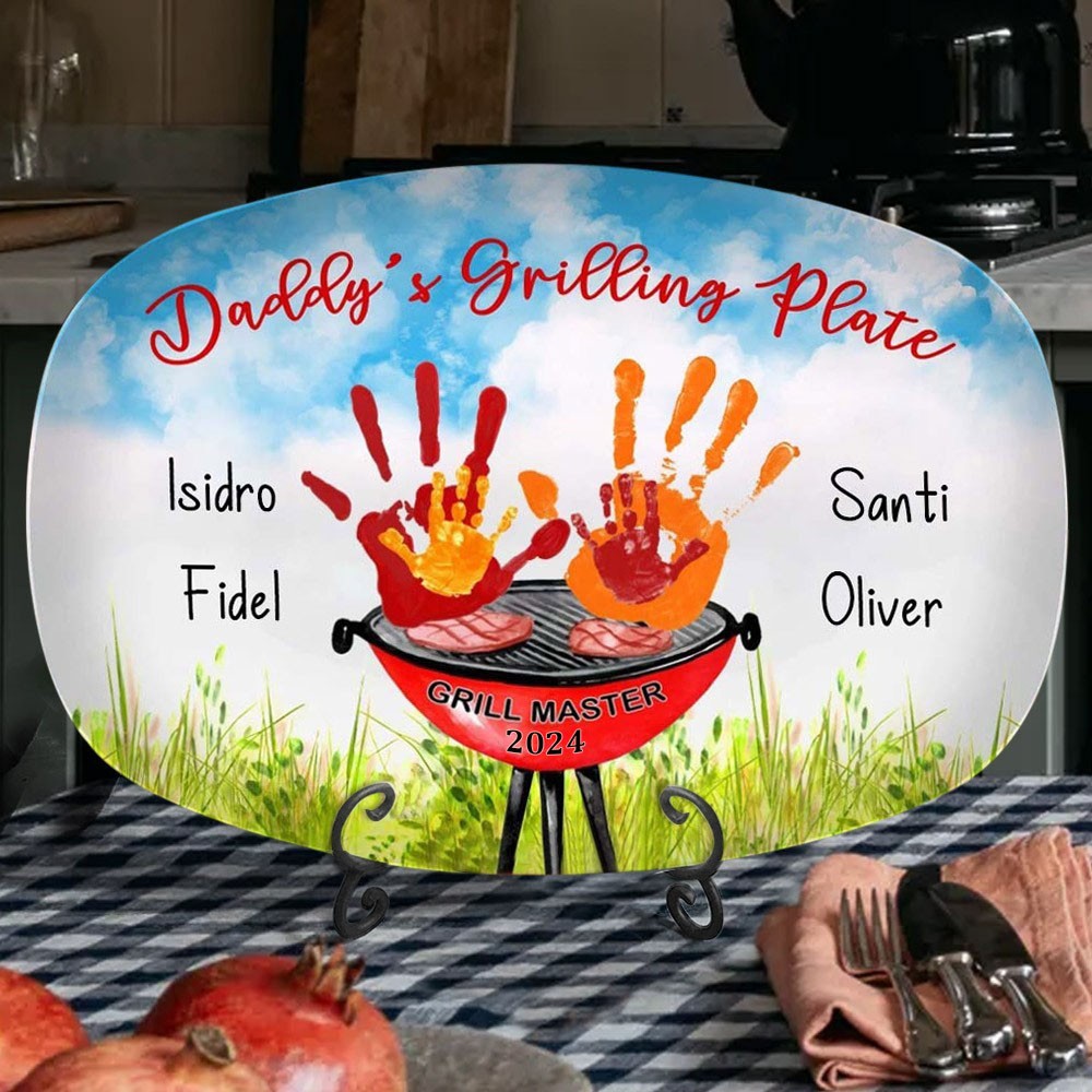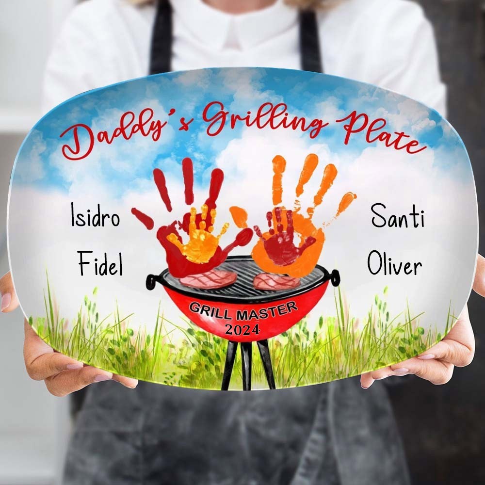 Personalised BBQ Daddy's Grilling Platter Handprint Father's Day Gift