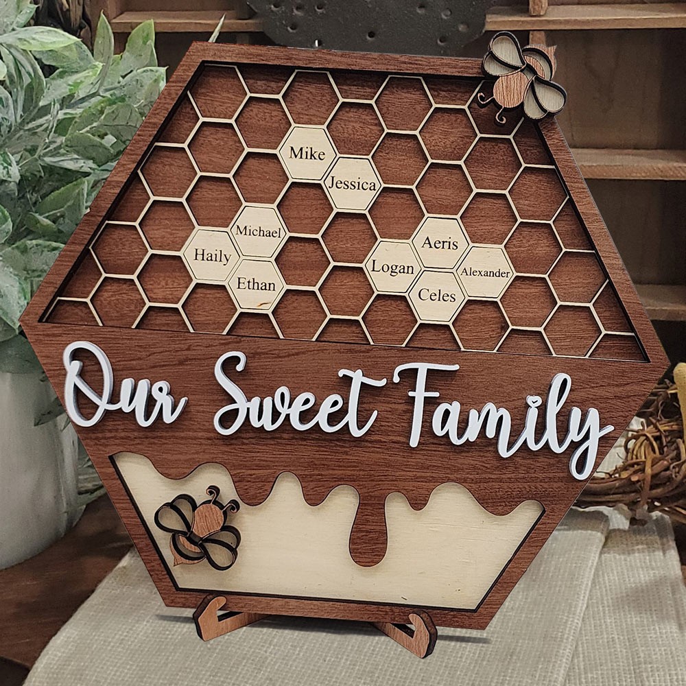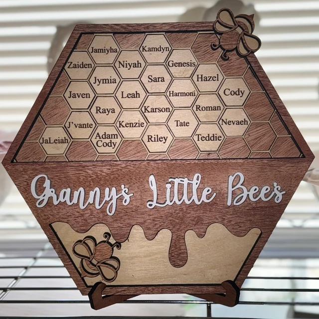 Personalised Bee Hive Family Tree Wood Name Sign for Anniversary Christmas Gifts Unique Gift for Mum Grandma