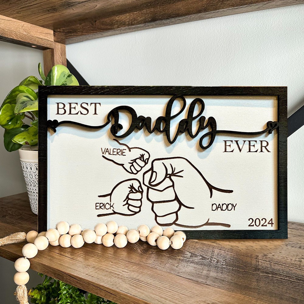 Personalised Best Daddy Ever Fist Bump Frame Wood Sign With Kids Names Meaningful Gift For Dad Father's Day Gifts
