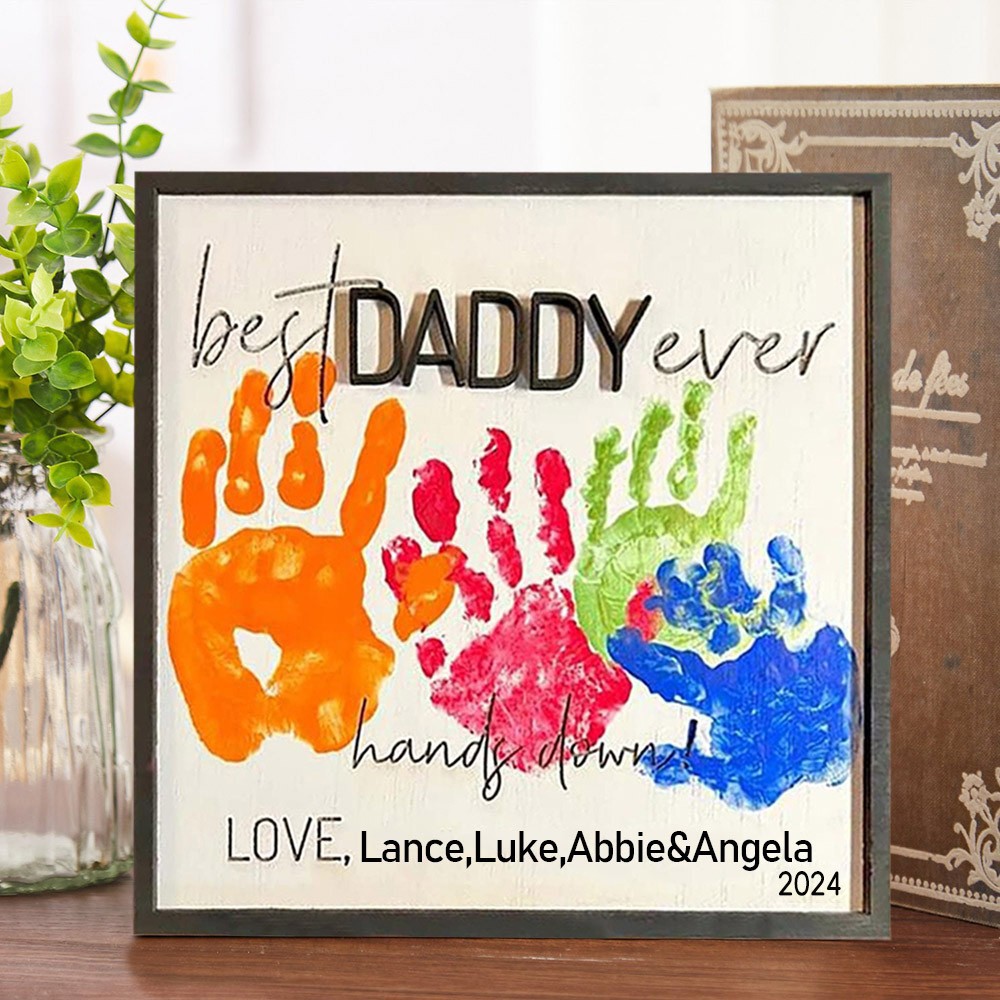Personalised Best Daddy Ever Hands Down Handprint Frame Father's Day Gift