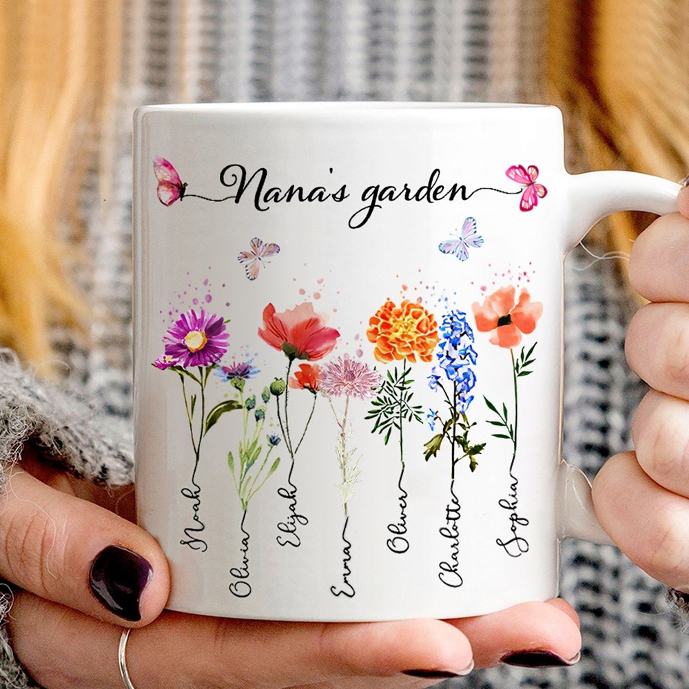Personalised Birth Flower Coffee Mug with kids Names for Mimi