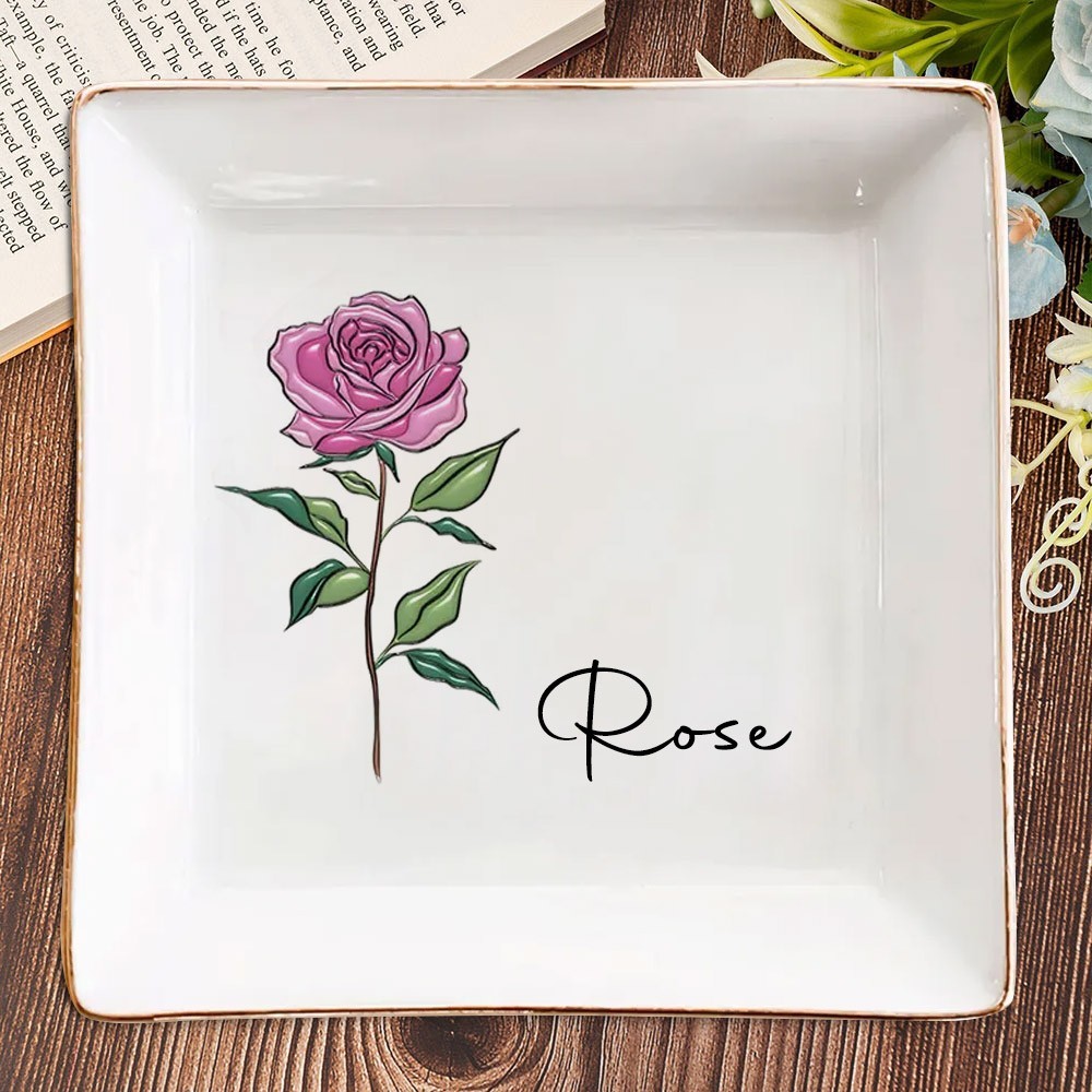 Personalised Birth Flower Jewelry Dish Birthday Gift for Friend Wedding Bridesmaid Gift Christmas Gift for Her