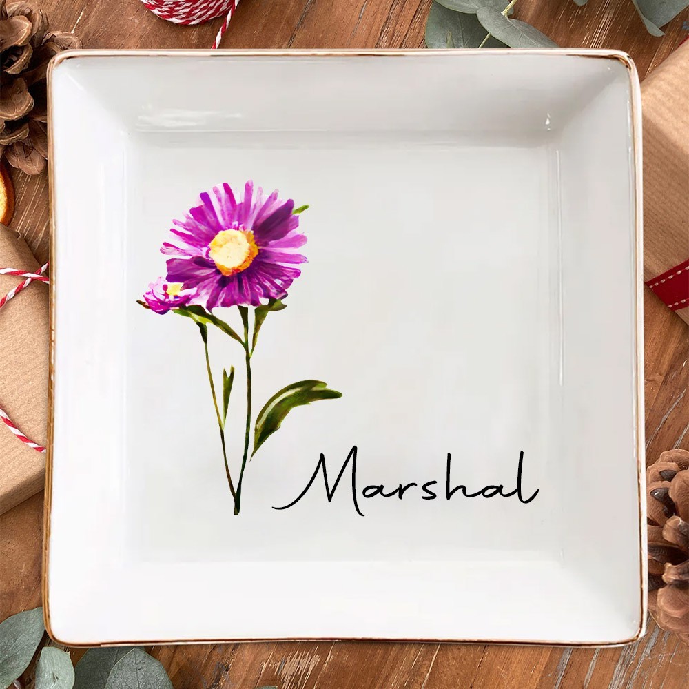 Personalised Birth Flower Jewelry Dish with Name Unique Gifts for Friend Wedding Bridesmaid Gift for Her Christmas Gift for Mum
