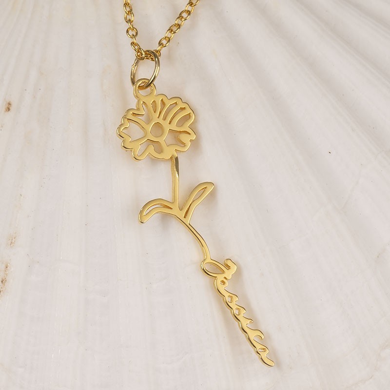 Personalised Birth Flower Name Necklace For Her