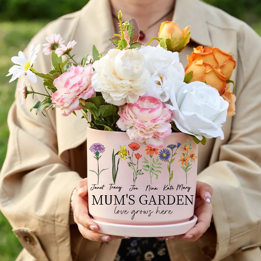 Personalised Birth Flower Plant Pot with Kids Name Mother's Day Gift