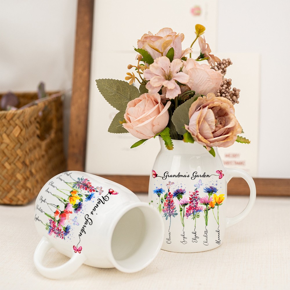 Personalised Birth Flower Vase with Engraved Names