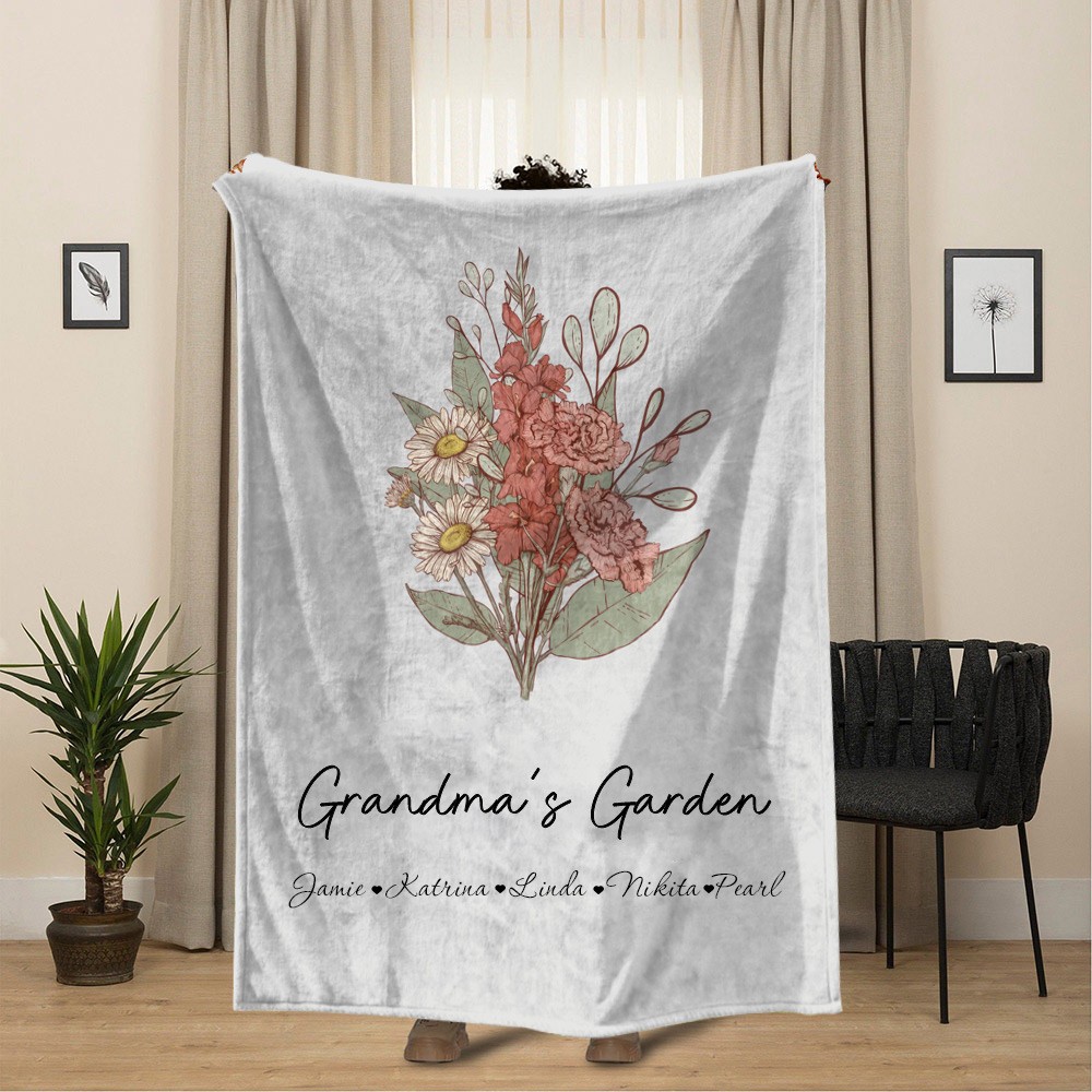 Personalised Birth Month Flower Bouquet Grandma's Garden Blanket Sign Gifts for Grandma Mum Mother's Day Gift ideas