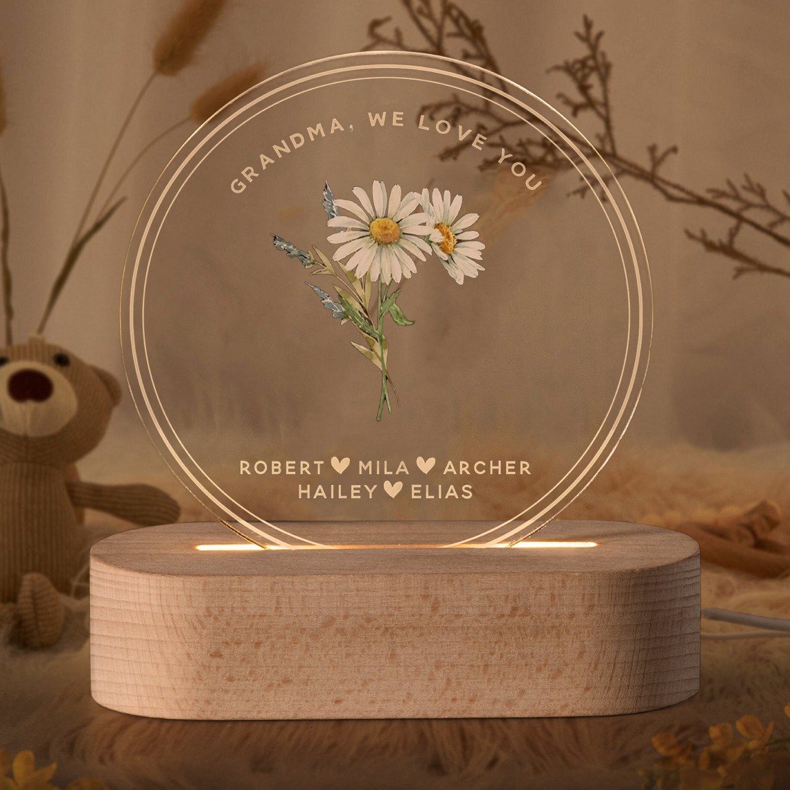 Personalised Birth Month Flower Night Light with Kids Names Gift Ideas for Mum Grandma New Mum Gift Mother's Day Gifts