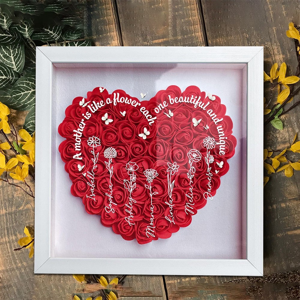 Personalised Birth Month Flower Shadow Box with Kids Names Unique Gift for Mum Grandma Mother's Day Gifts