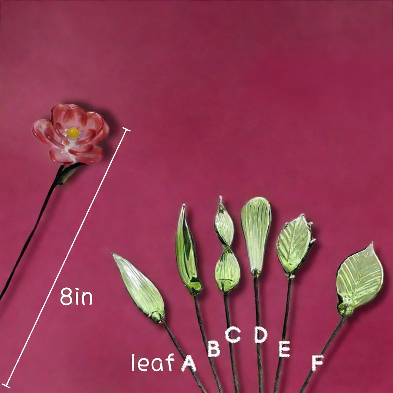 This custom glass flower bouquet features personalised birth month flowers, each hand-crafted from glass with blooms measuring approximately 1–2 inches (2.5–5 cm) and a total length of about 8 inches (20 cm). Designed with an adjustable iron stem, each flower fits perfectly in vases around 4–5 inches (10–12 cm) tall, making it easy to display. A unique and lasting keepsake gift for mum or grandma, perfect for Mother’s Day, birthdays, and celebrating family love.