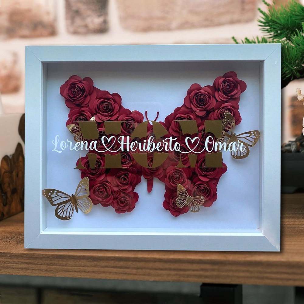 Personalised Butterfly Shaped Mum Flower Shadow Box With Kids Names Christmas Gift Ideas Unique Gift For Mum Grandma