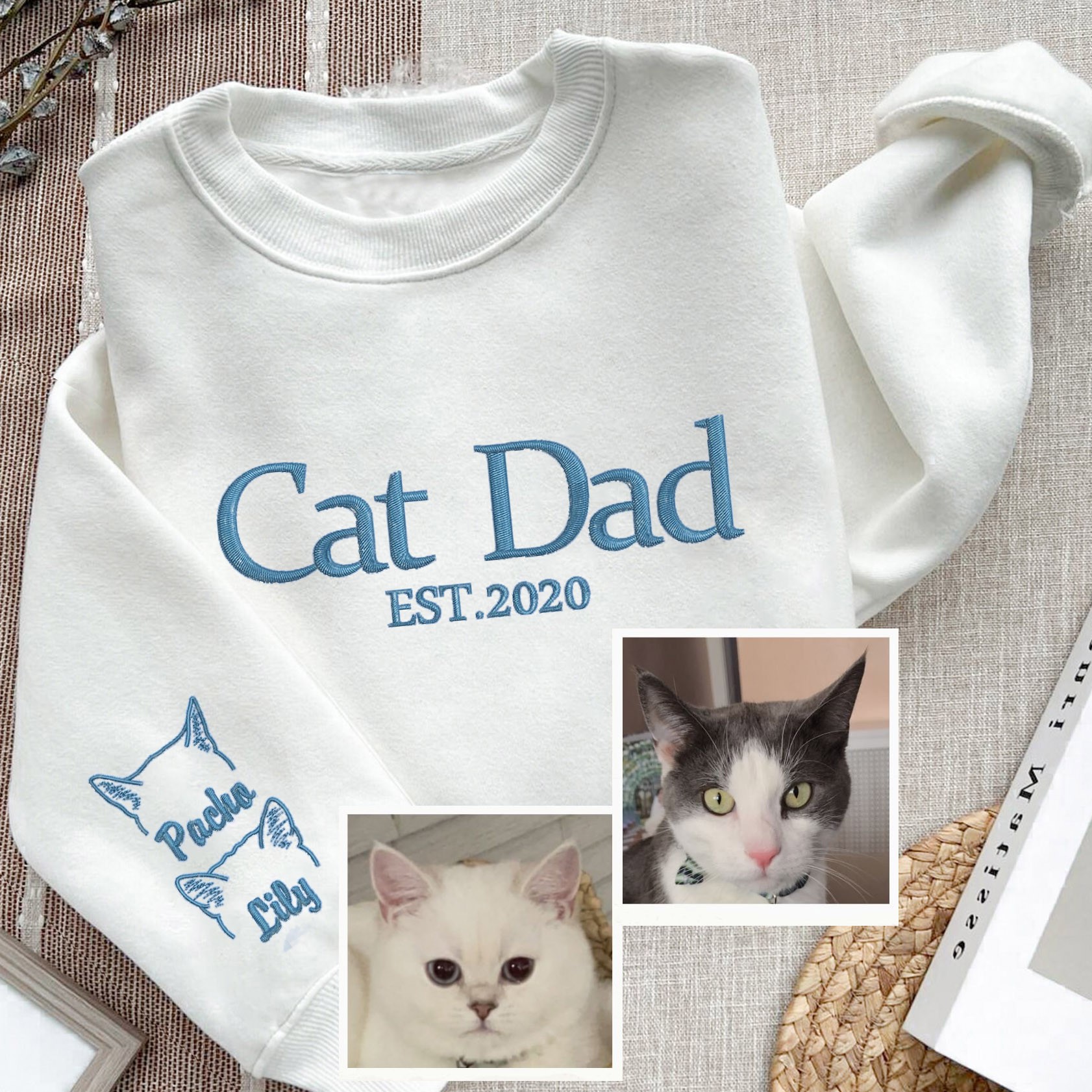 Personalised Cat Dad Embroidered Sweatshirt Hoodie Unique Gifts For Pet Lover Father's Day Gift
