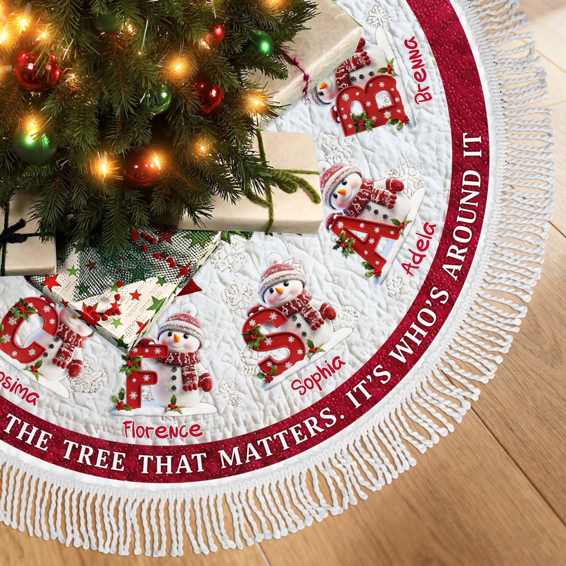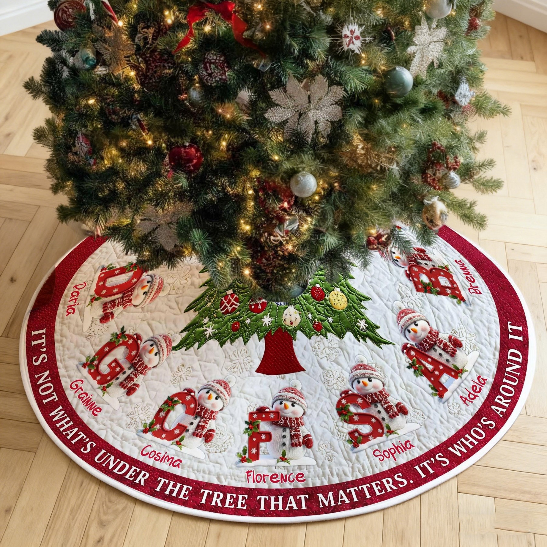 Personalised Christmas Tree Skirt, Custom Name Family Christmas Tree Skirts, House Warming Gift For Mum Grandma Christmas Gift Ideas