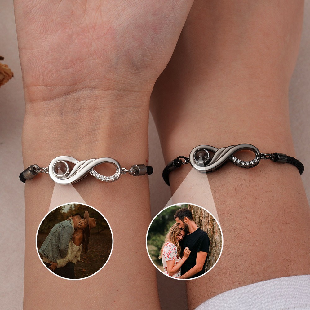 Personalised Couple Infinite Shaped Projection Bracelet With Magnetic Heart Charm Keepsake Gift For Couple Soulmate