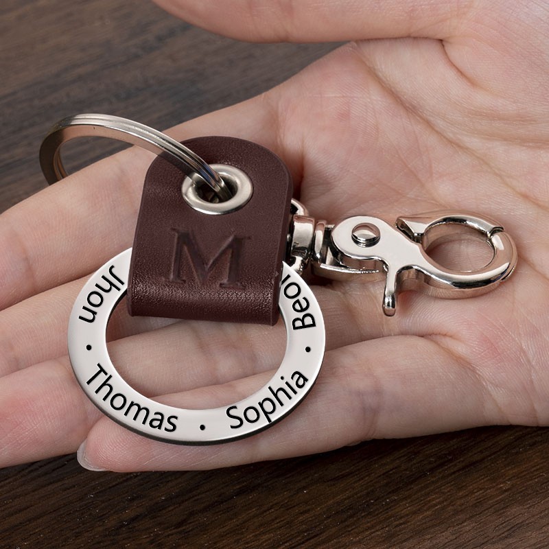 Personalised Dad Leather Keychain with Engraving Names Father's Day Gifts