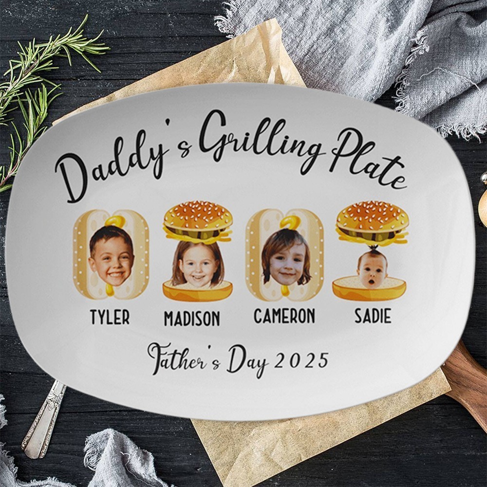 Personalised Daddy's Grilling Plate with Kid's Photos and Names on Burger Gifts for Dad Grandpa Father's Day Gift