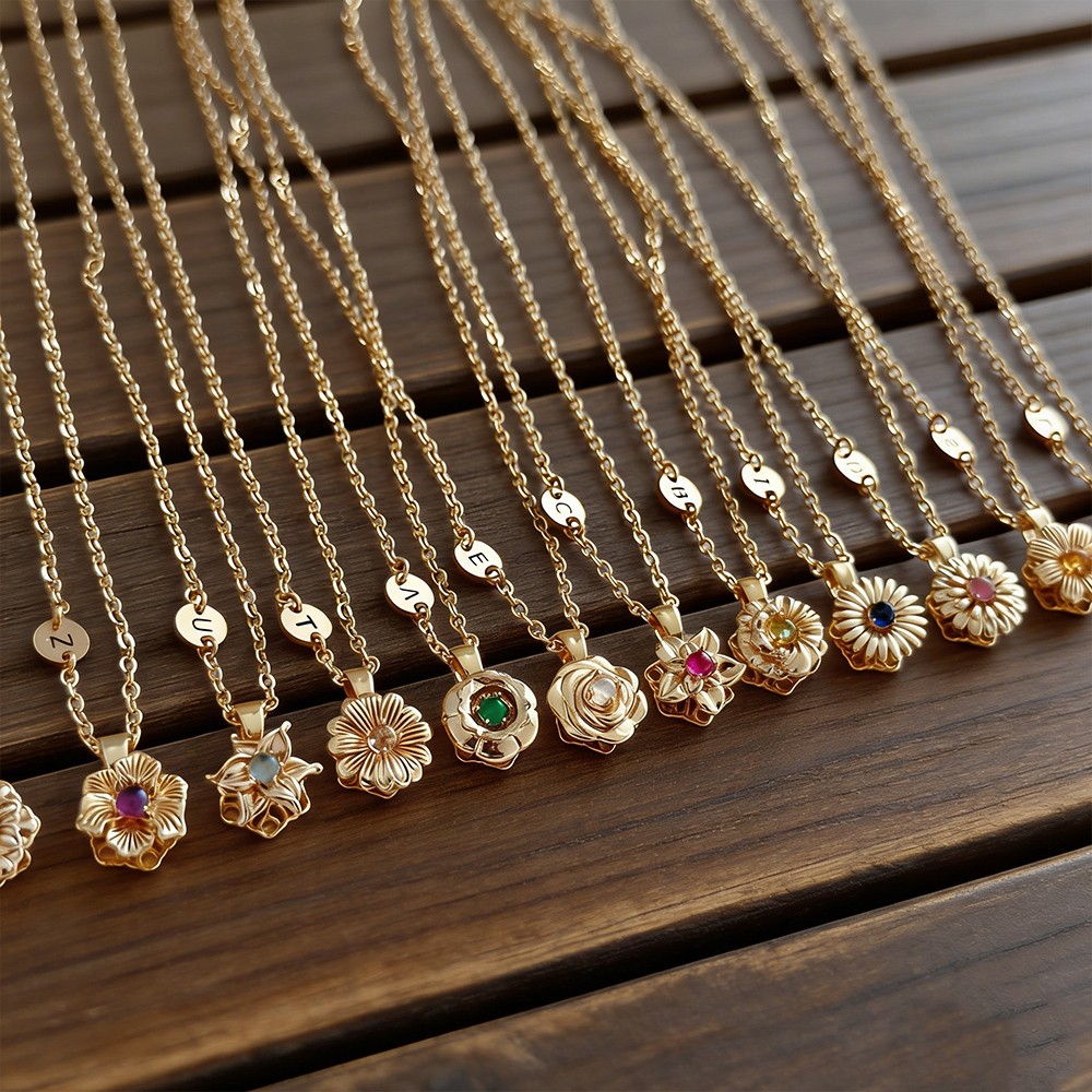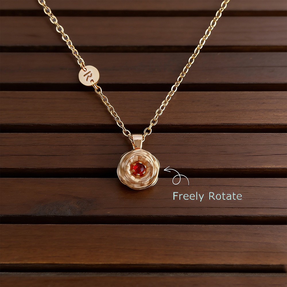 Personalised Dainty Initial Birth Flower Necklace With Birthstone Fidget Spinner Birthflowers Gift Mother's Day Gift