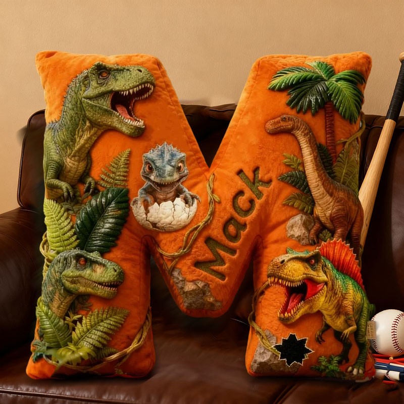 Personalised Dinosaur Forest World Letter Pillow with Custom Name Christmas Gift for Kids Birthday Gifts