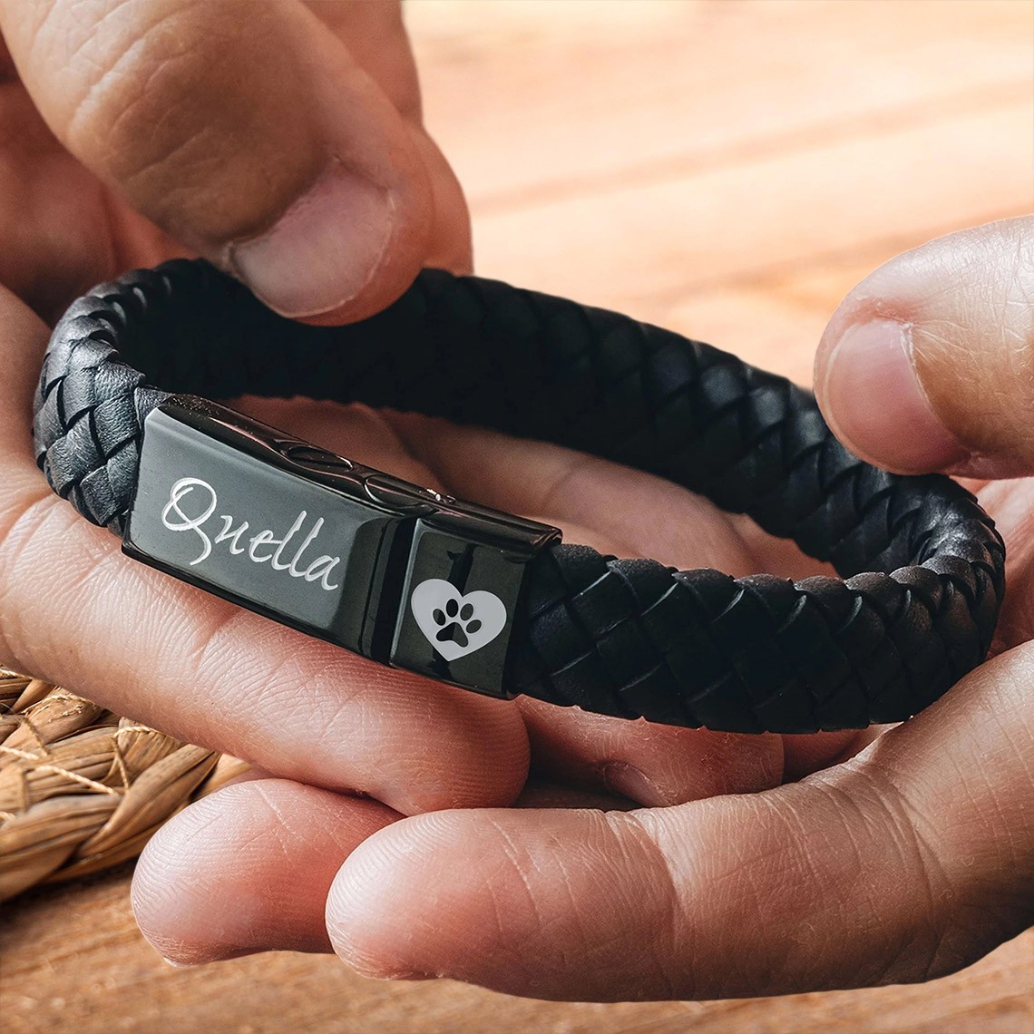 Personalised Dog Urn Leather Bracelet Custom Engraved Pet Ashes Bracelet Loss of Pet Gift Pet Memorial Gift