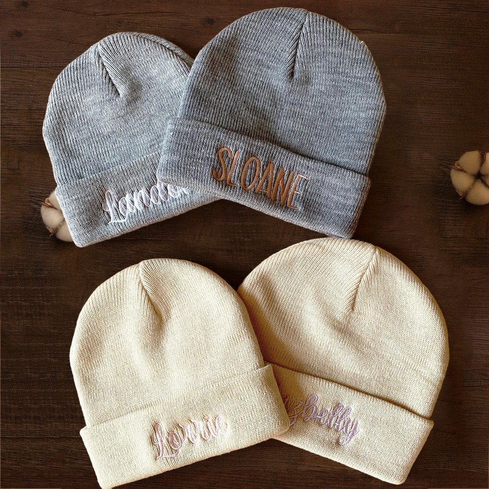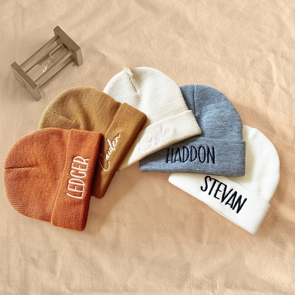 Personalised Embroidered Name Baby Adult Newborn Beanie Hat Unisex Toddler Hat Baby Shower Gift Christmas Gifts for Kids