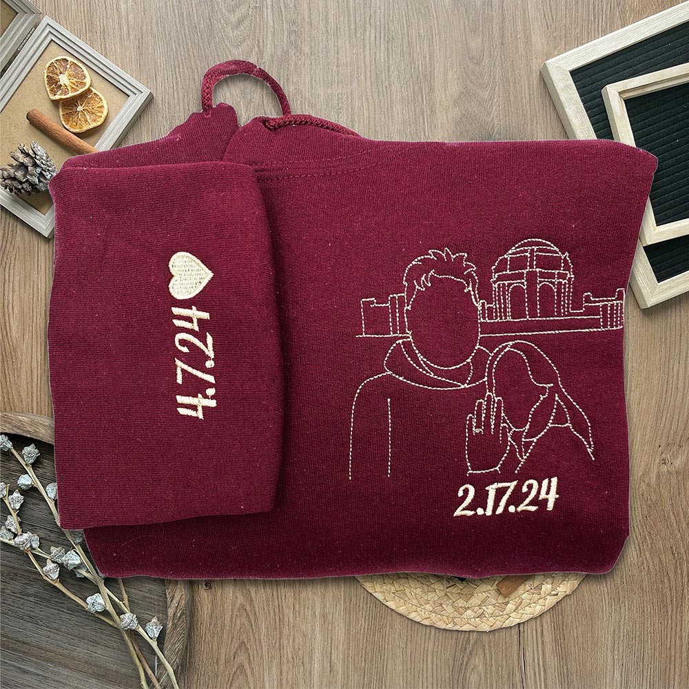 Personalised Embroidered Photo Portrait Outline Sweatshirt Anniversary Gifts for Her Valentine's Day Gifts for Couples