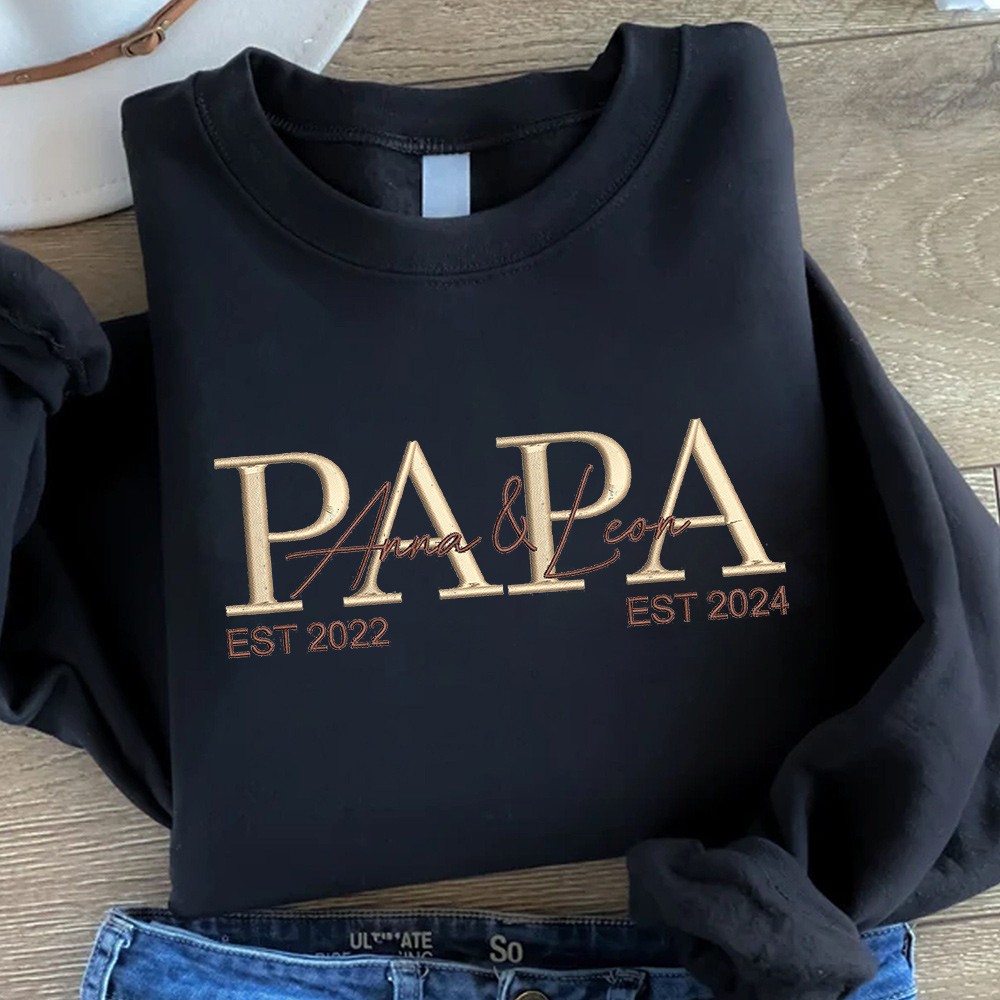 Personalised Embroidered With Kids Names Papa Hoodie Sweatshirt T-shirt Father's Day Gifts