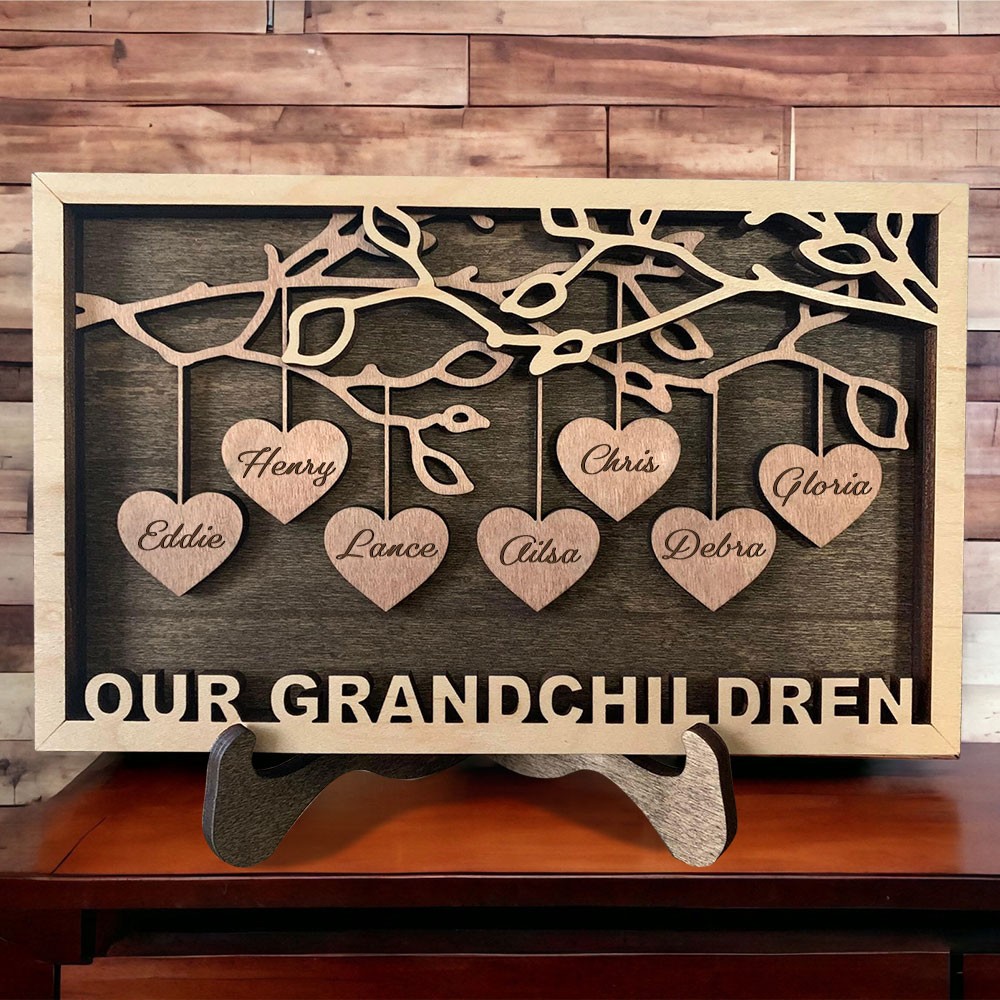 Personalised Engraved Wood Family Tree Sign with Grandkids Names for Grandma Gifts for Family Unique Christmas Gift