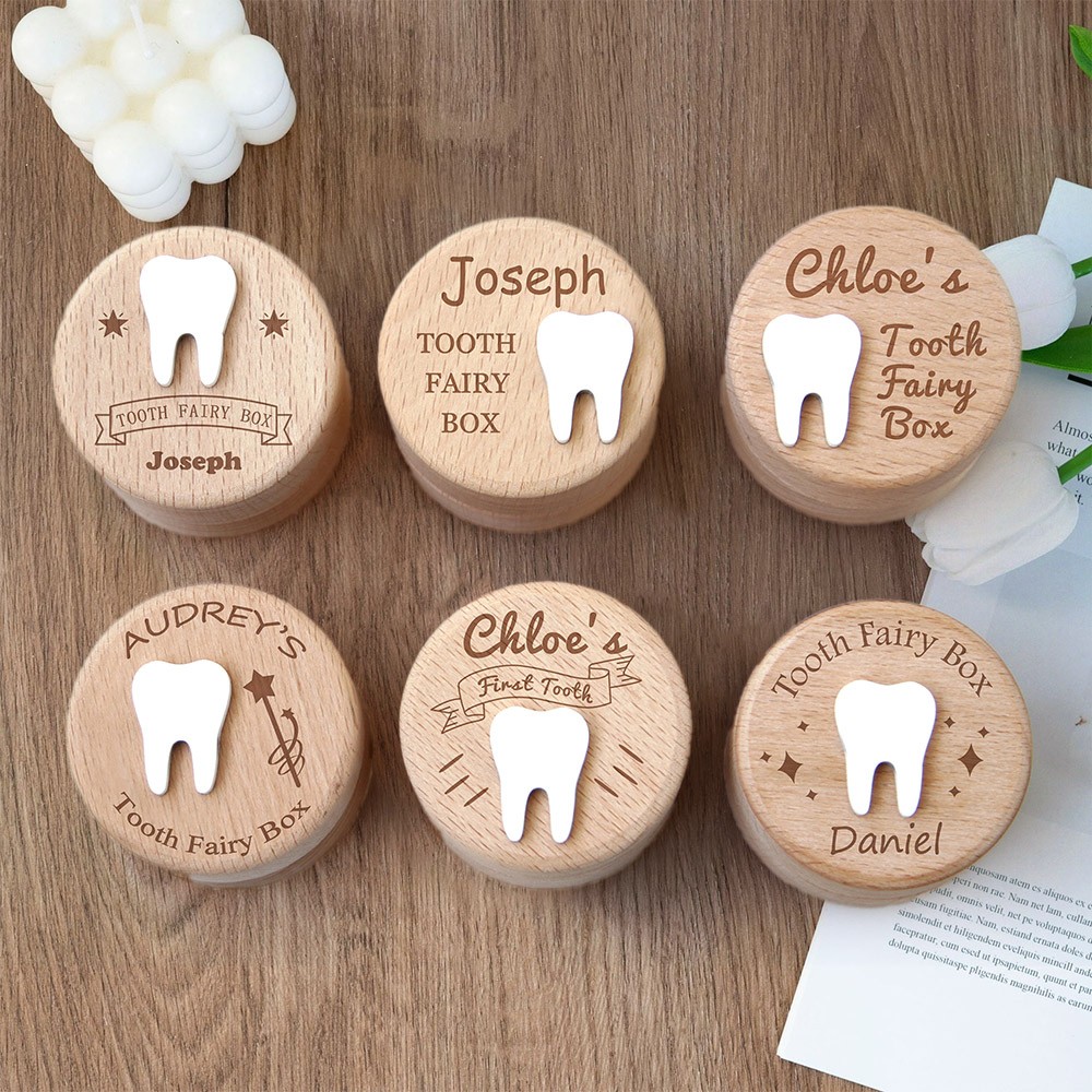 Personalised Engraved Wooden Baby Tooth Fairy Keepsake Box First Birthday Gift for Kids Baby Shower Gifts