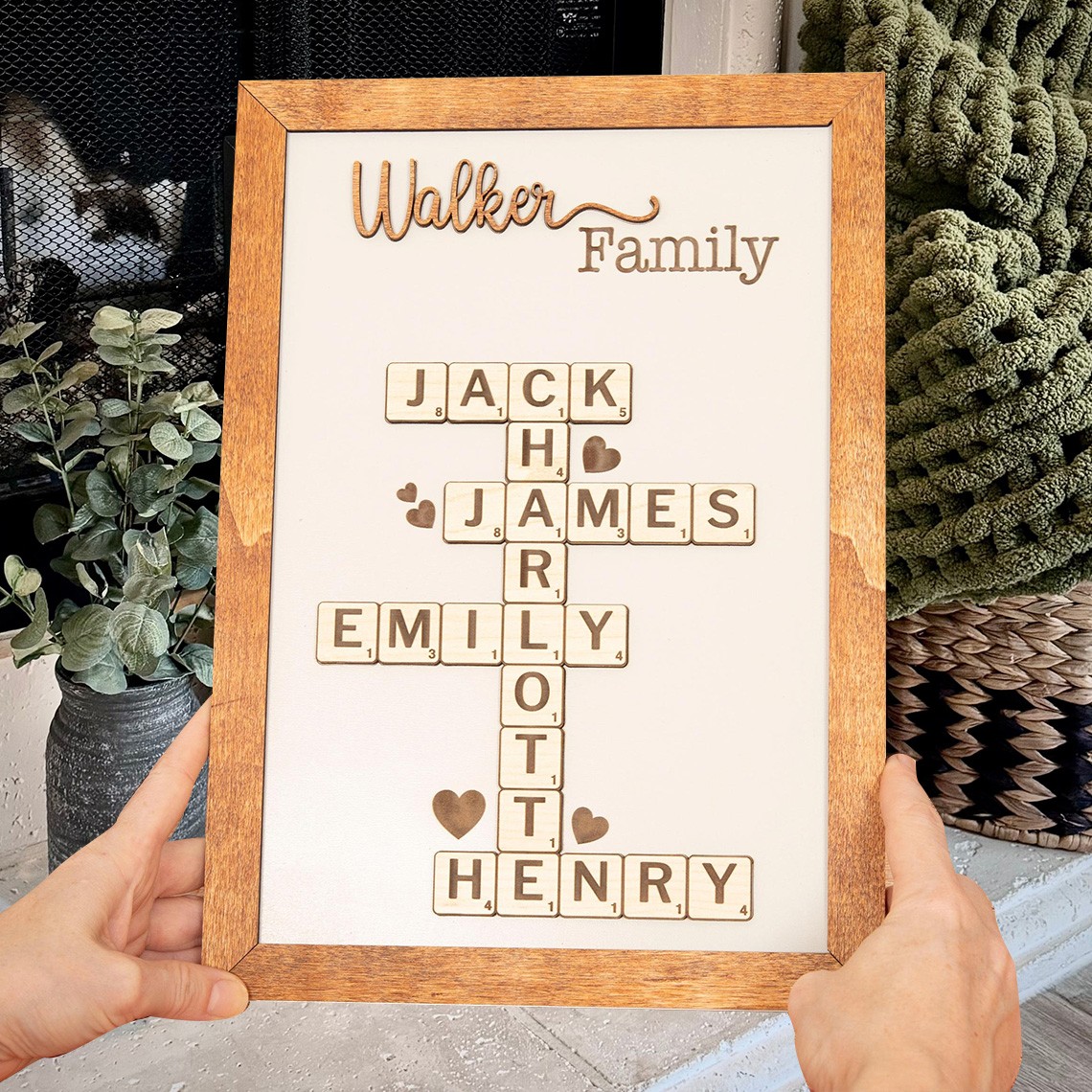 Personalised Family Crossword Scrabble Wooden Puzzle Sign for Mum Dad Custom Family Gifts Mother's Day Gift Ideas
