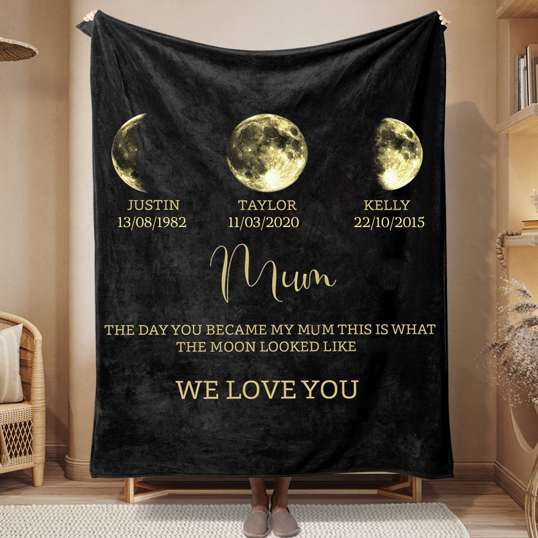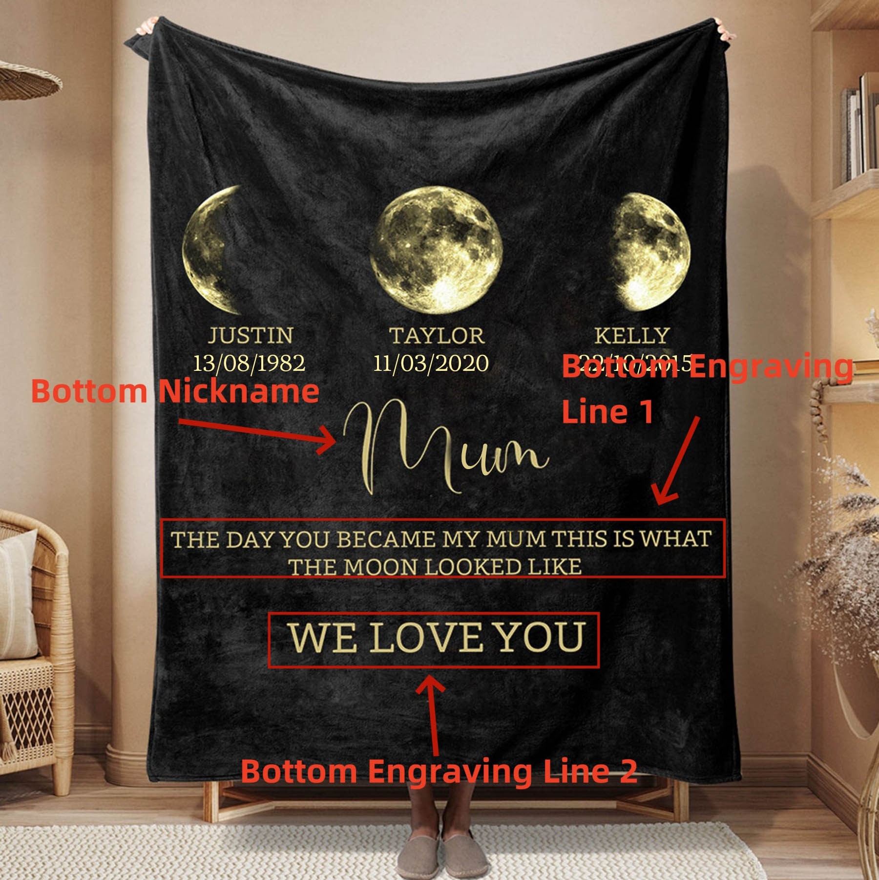 Personalised Family Moon Phase Blanket For Mum Mother's Day Gifts Unique Gifts For Mum
