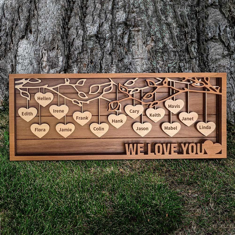 Personalised Family Tree Wood Frame Sign with Kids Names Unique Family Keepsake Christmas Gifts for Mum Grandma
