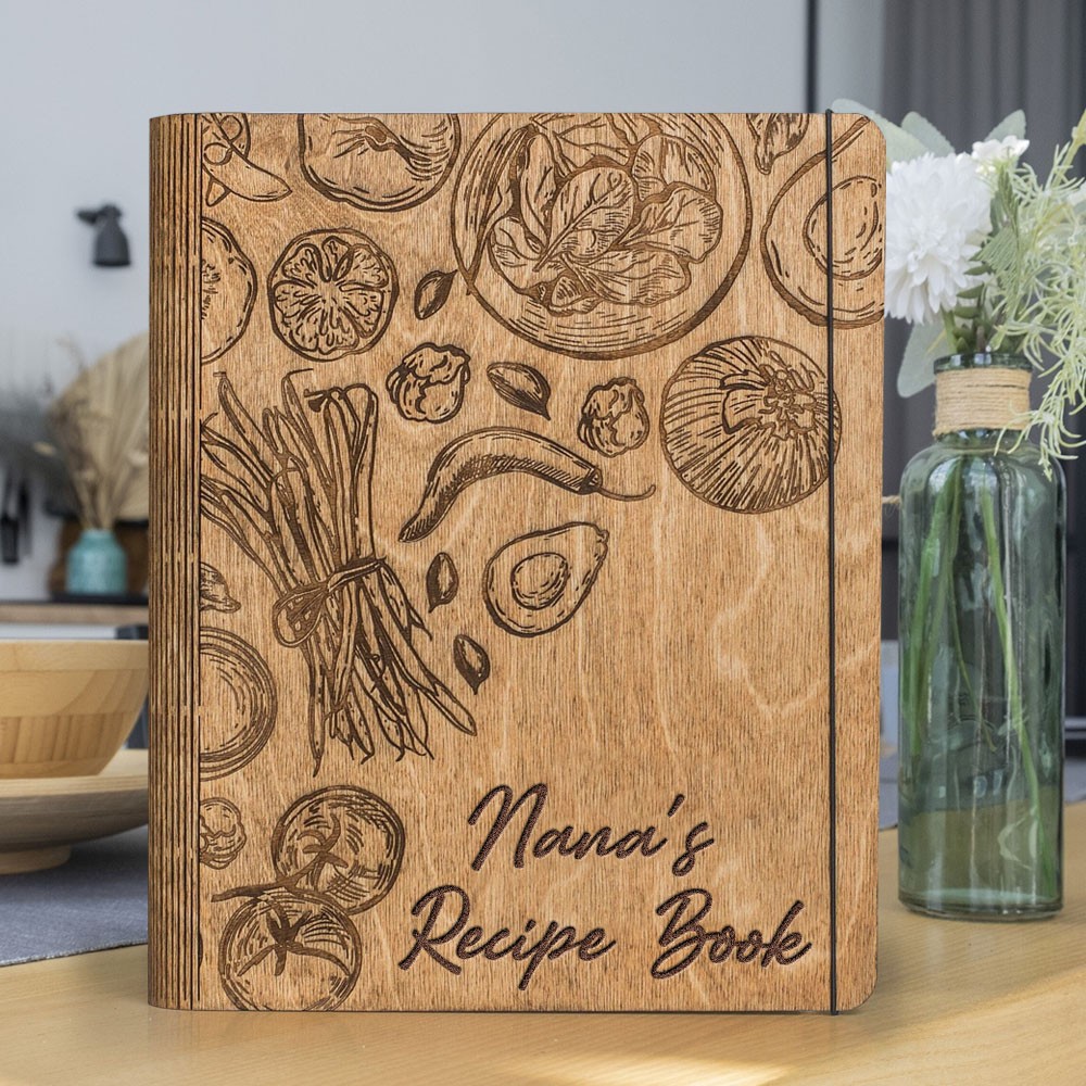 Personalised Family Wooden Recipe Book Blank Binder Custom Engraved Journal for Mum Christmas Gift Ideas