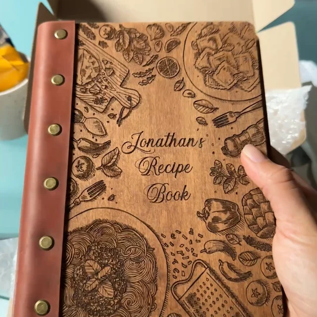Personalised Family Wooden Recipe Book Blank Binder Gift Ideas for Mum Grandma Unique Christmas Gift