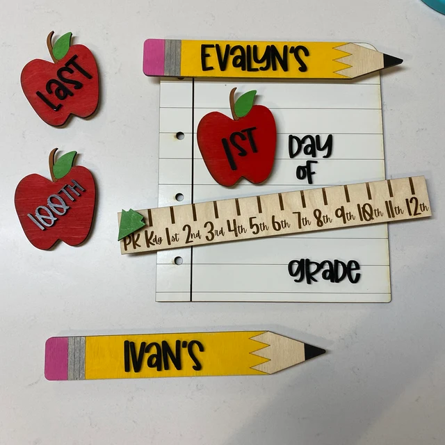 Personalised First/100th/Last Day Sign With Names Photo Prop Interchangeable Back to School Gifts for Kids