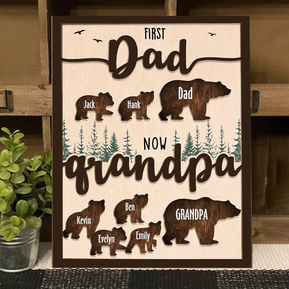 Personalised First Dad Now Grandpa Wood Bear Sign with Kids Names Unique Gifts for Dad New Grandpa Gift Father's Day Gift