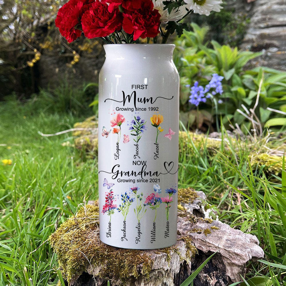Personalised First Mum Now Grandma Birth Flower Vase Mother's Day Gift