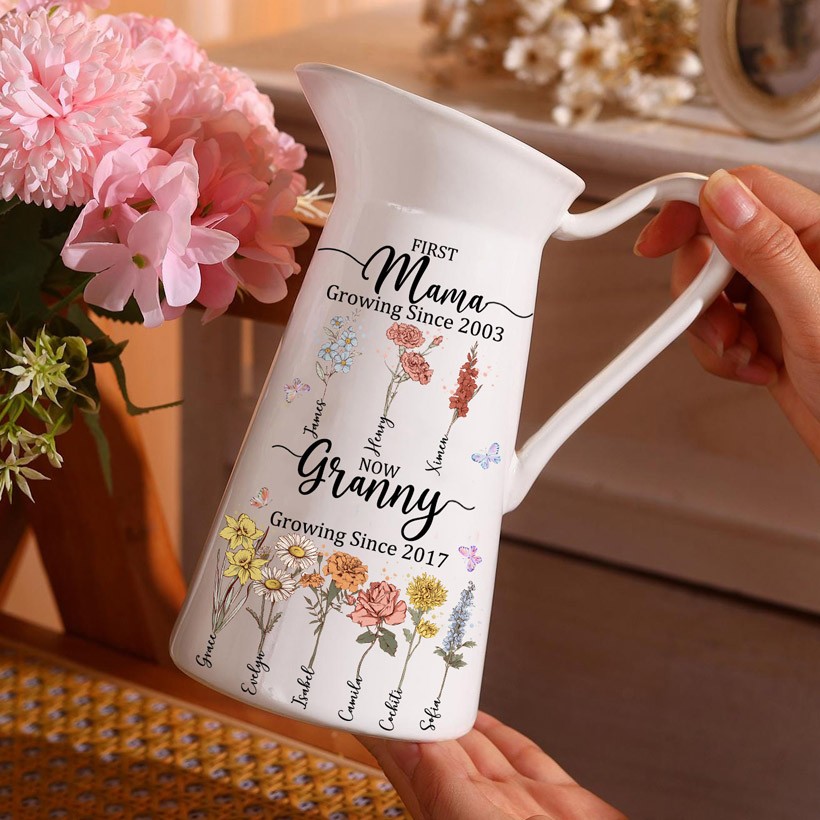 Personalised First Mum Now Grandma Birth Month Flower Vase with Kids Names Christmas Gifts for Mum Grandma