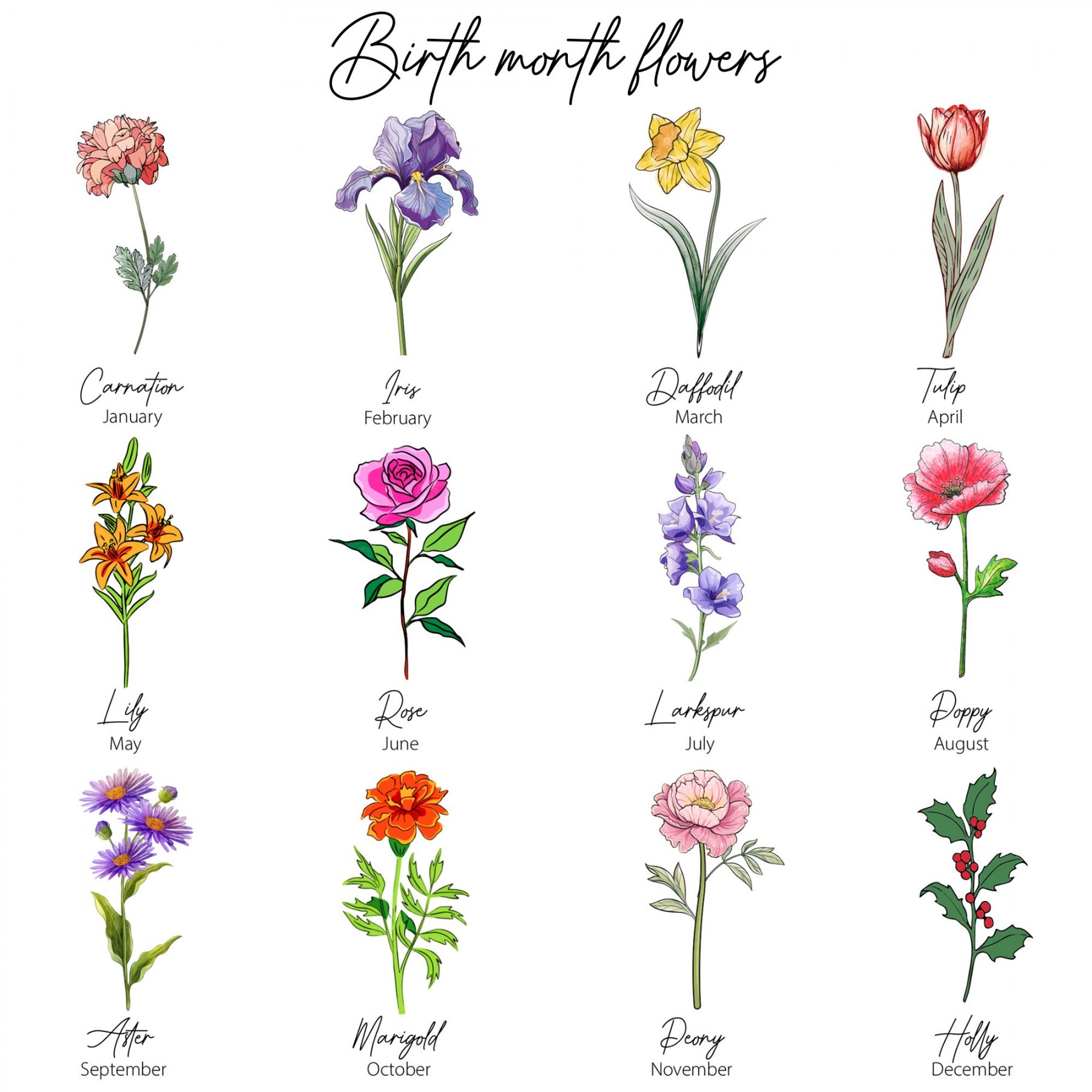 -- Select 1st Flower Type Line 1 -- January-Carnation February-Iris March-Daffodil April-Tulip May-Lily June-Rose July-Larkspur August-Poppy September-Aster October-Marigold November-Peony December-Holly