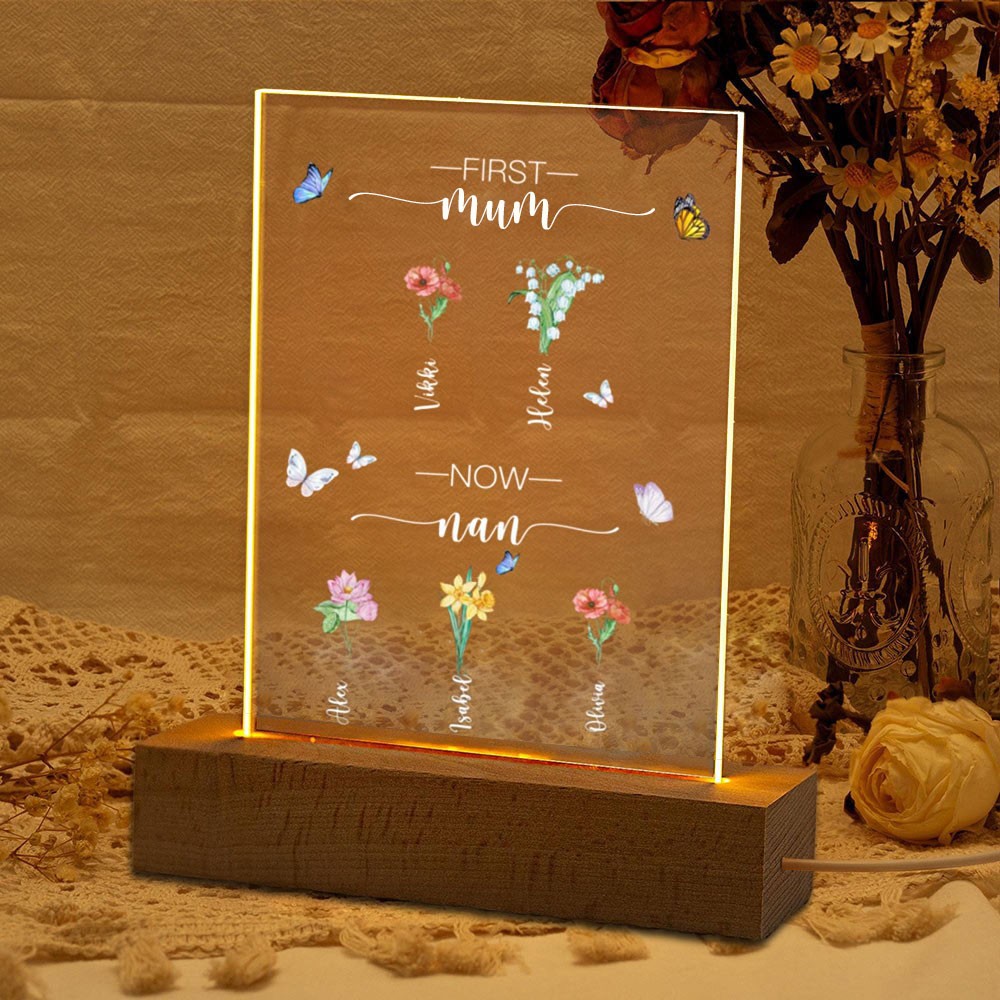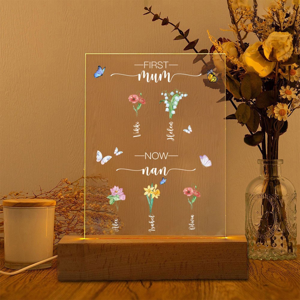 Personalised First Mum Now Granny Birth Month Flower Night Light Unique Gifts for Mum Nanny Mother's Day Gift Ideas