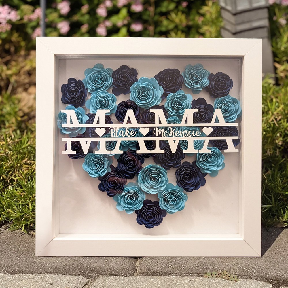 Personalised Flower Shadow Box with Kids Names for Mum